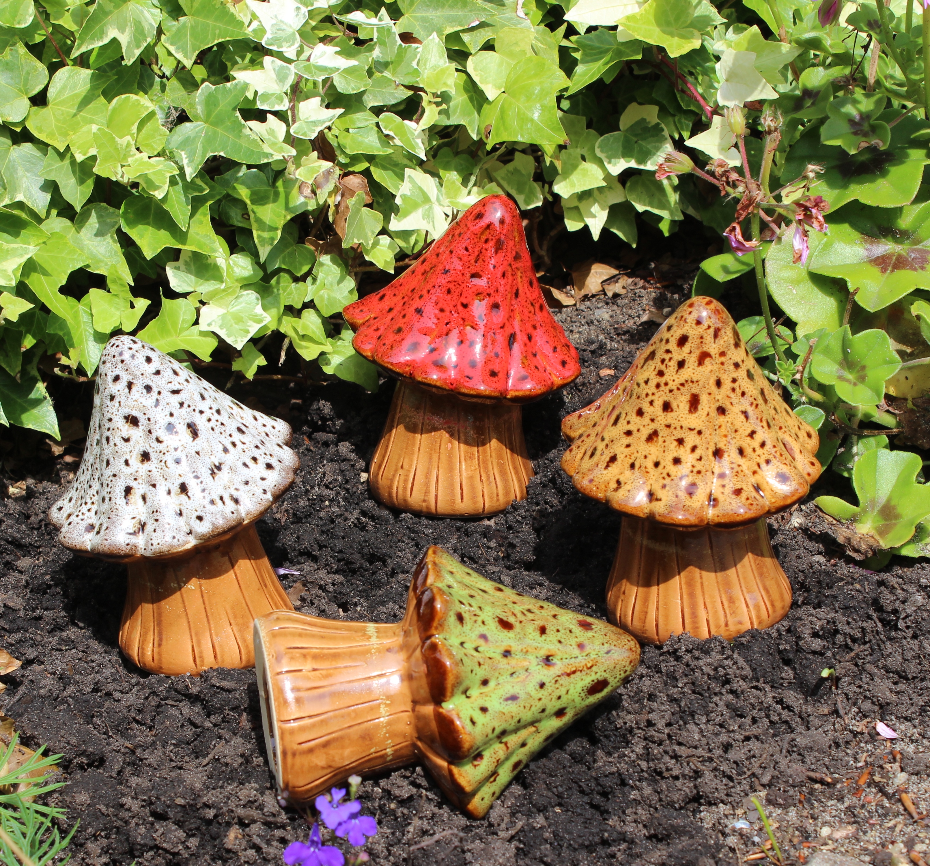 Sød dekorativ 14cm paddehat i 4 forskellige flotte farver. Pynter i ethvert bed. Lavet i vejrbestandigt keramik, men tåler dog ikke frost.