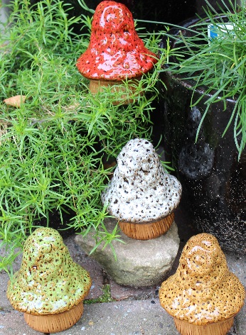 Bemærk det flotte DAISY mønster...Sød dekorativ 13 cm paddehat i 4 forskellige flotte farver. Pynter i ethvert bed. Lavet i vejrbestandigt keramik, tåler dog ikke frost .