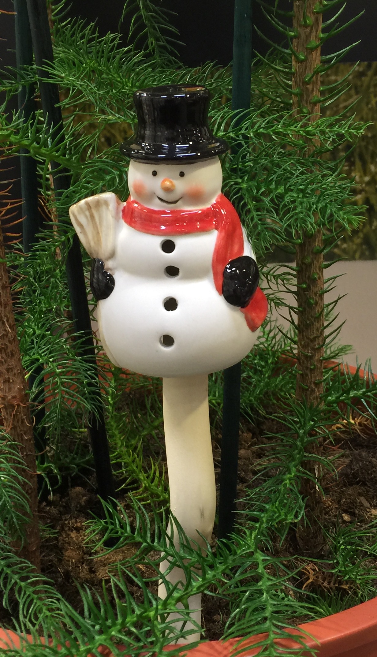 Sød og sjov snemand på 30 cm stick med fjeder. Vipper i vinden.