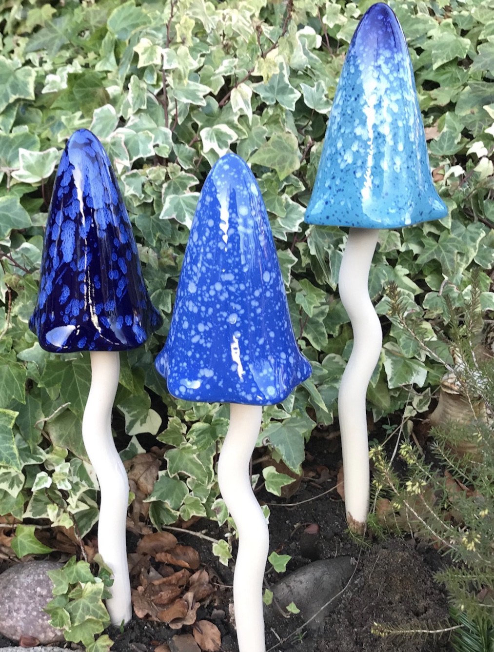 Smuk og dekorativ paddehat på stick. 44 cm høj. Pynter i enhver have eller krukke på terassen.Den er lavet i vejrbestandigt keramik, men tåler dog ikke frost. Arrangeres sammen med andre paddehatte og stilles tæt. Så vil evt blæst få den til at "klinge" med lyde.