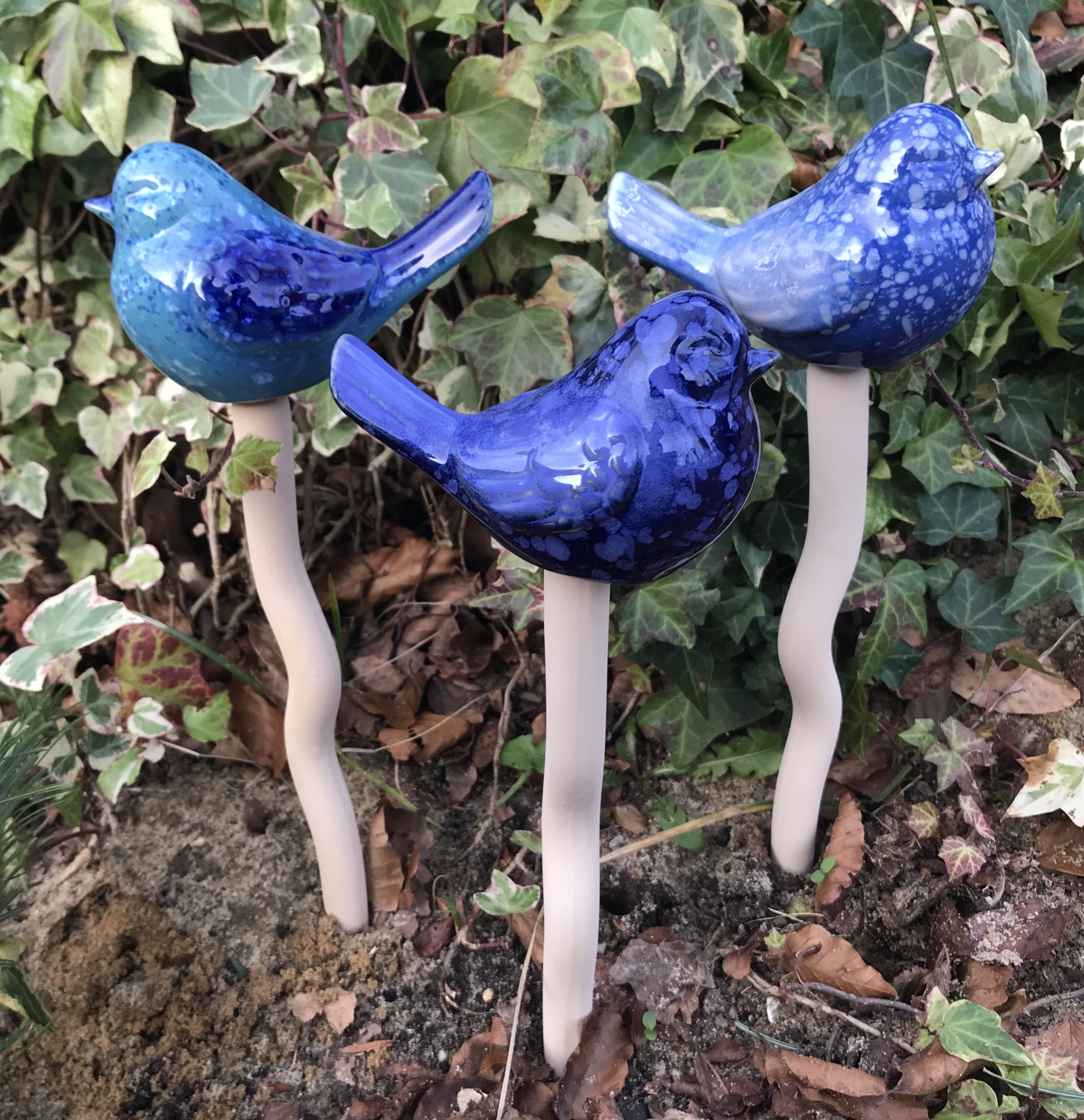 Smukke vippende fugle på 3o cm stick. blue colors
