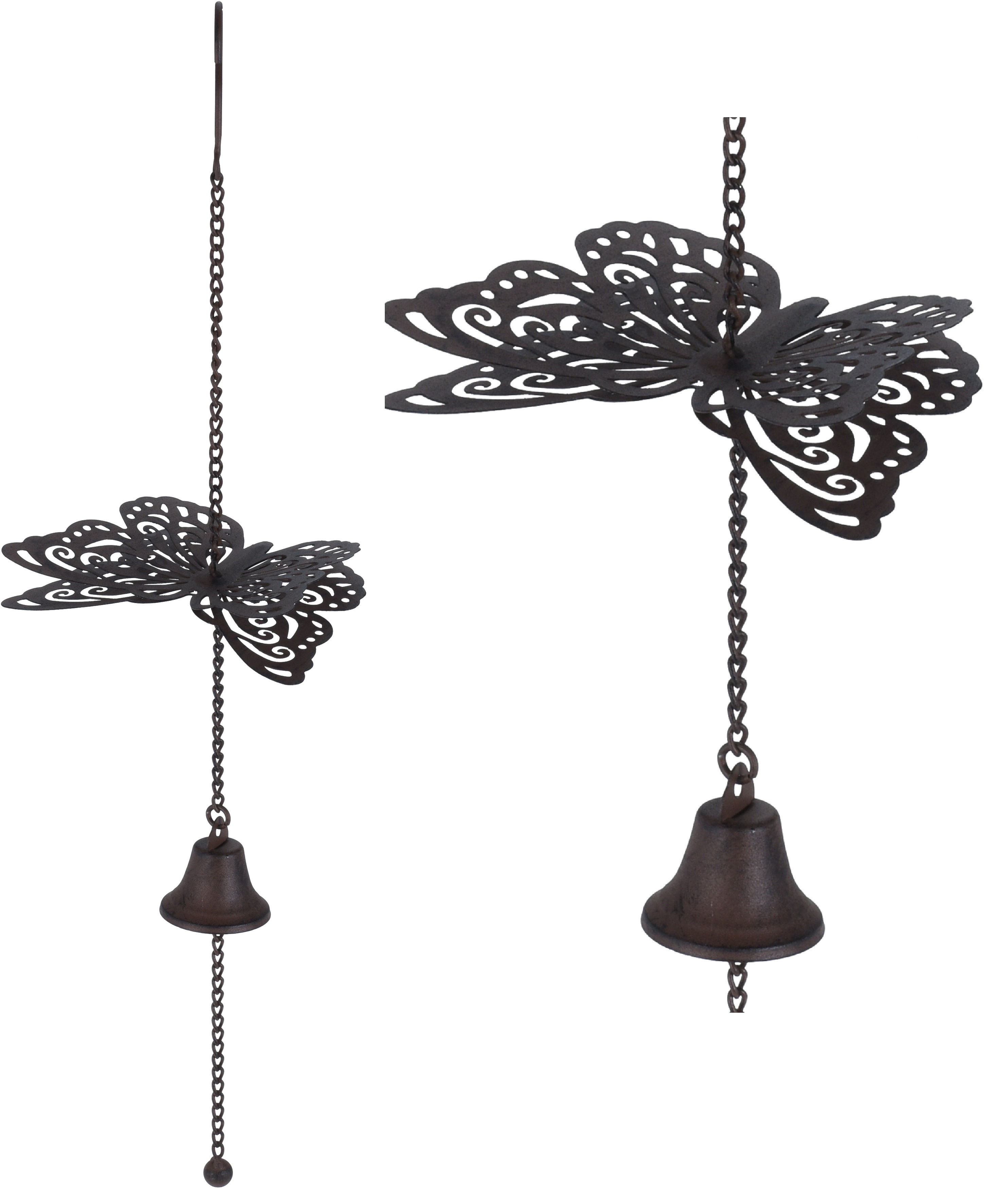 Vindklokke / vindspil i metal, med sommerfugl, 46 cm.