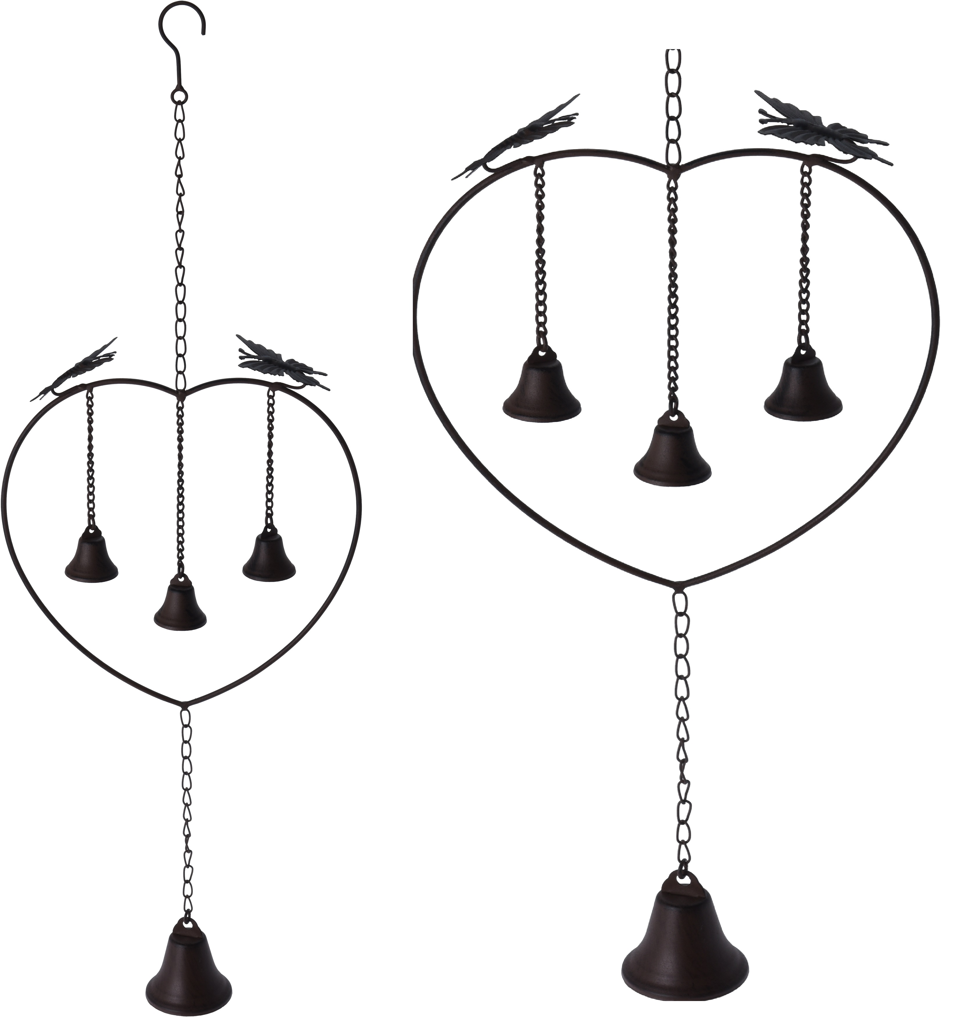 Vindspil i metal, med 4 klokker. 70cm høj, 25 cm dia