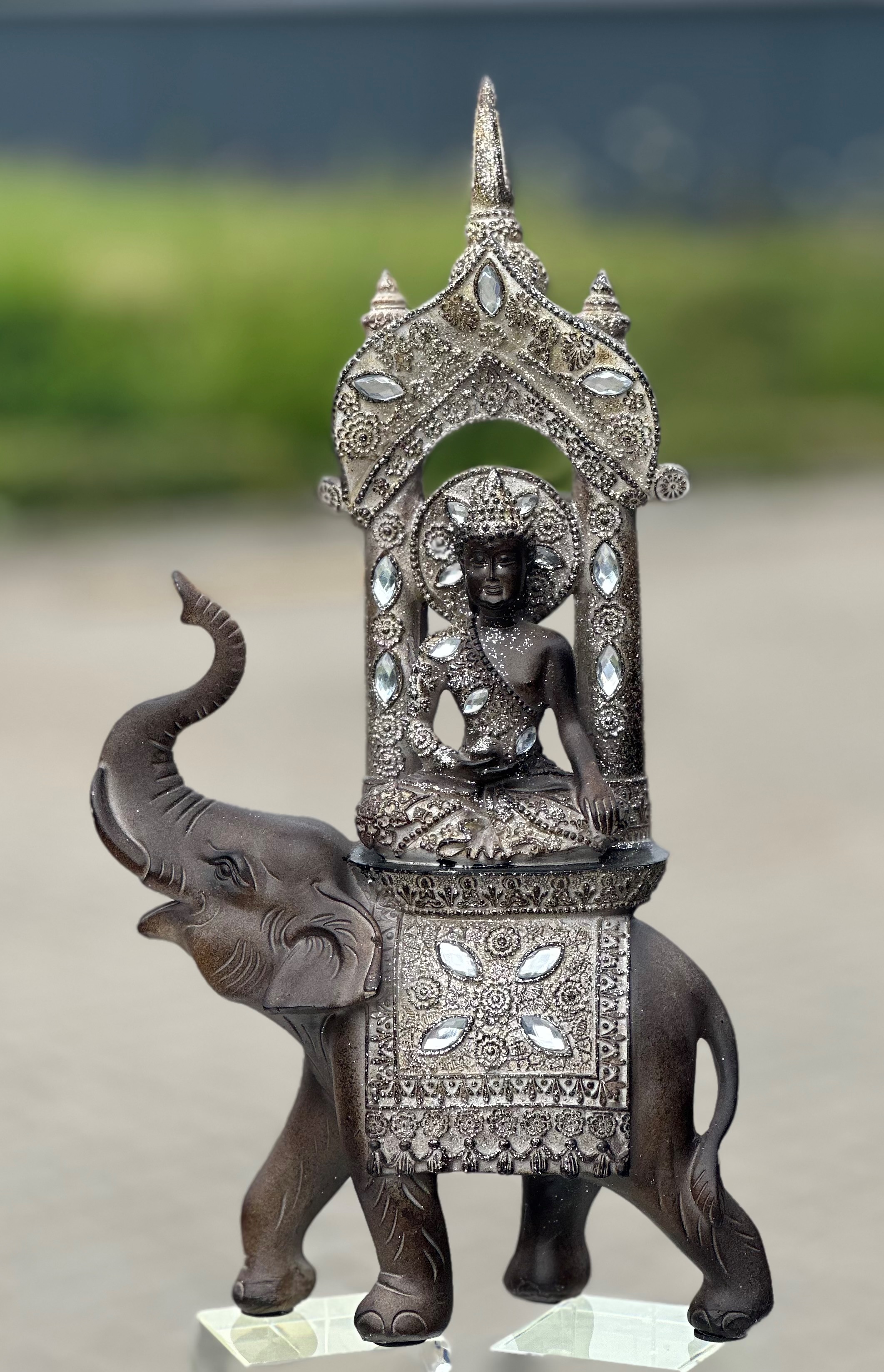 BUDDHA ELEFANT 36 CM GOLDEN SILVER